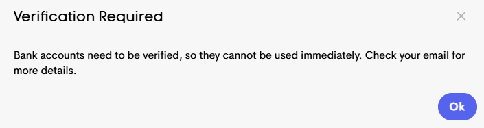 If you selected Bank Transfer as payment method, this needs to be verified before you can use it to make any payments (see Verify your Bank Account).