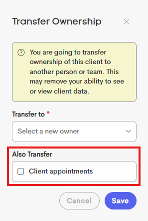 You may lose access to this profile if you transfer it to a team you are not apart of, or to another doula's personal clients tab.