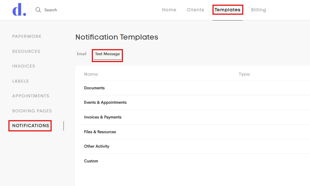 Within the Doulado platform, clients can receive notifications via email and SMS messages. Once a client completes the opt-in process, they will receive a text message whenever there is new activity within their Doulado account such as pending documents and appointment reminders.
