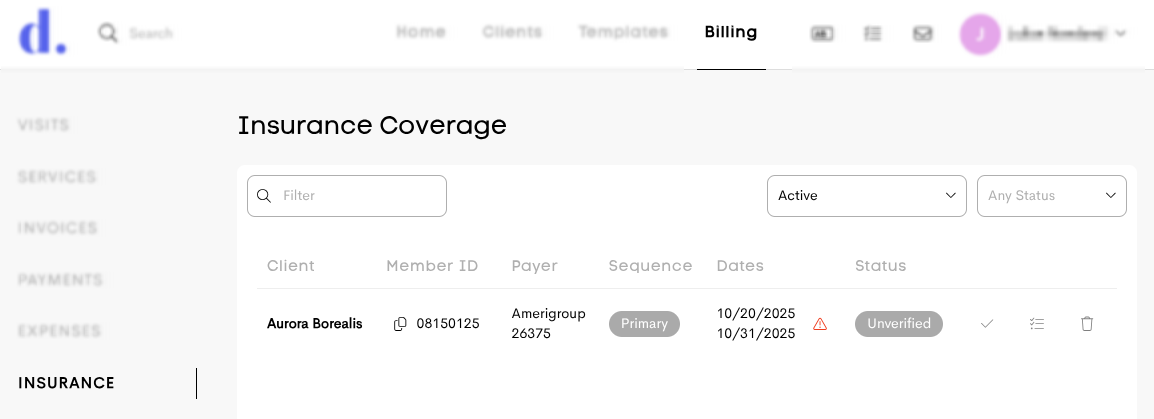 You can also find the insurance coverage of your clients listed in Doulado's Billing > Insurance page.
