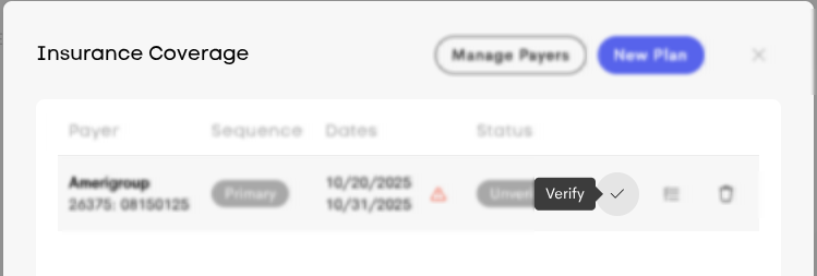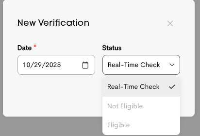 Selecting the Eligible status will immediately set the client's insurance coverage to Verified.