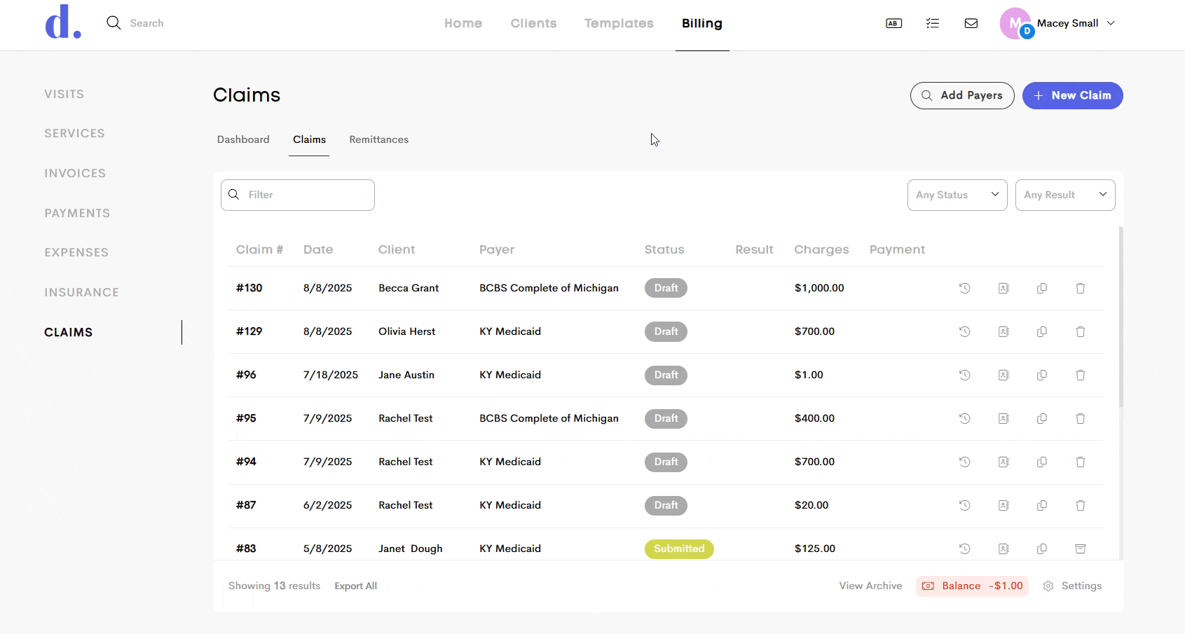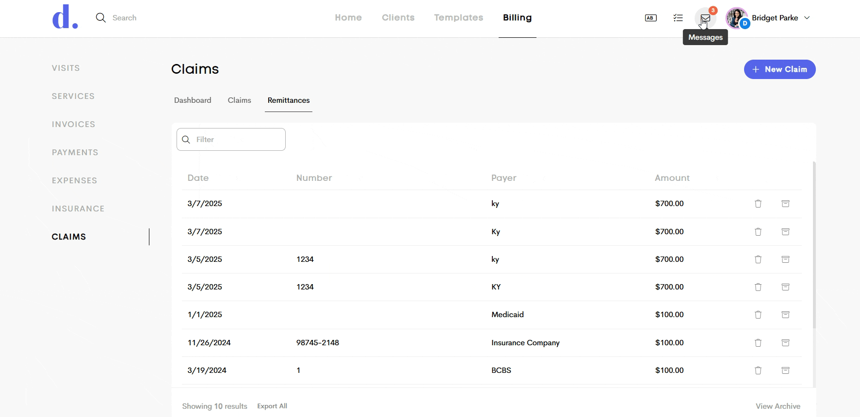 - More Detailed Remittances: Previously, the remittance view and PDFs displayed only limited information. We’ve updated them to include more relevant claim details—such as patient name and service dates—for easier review and record-keeping.