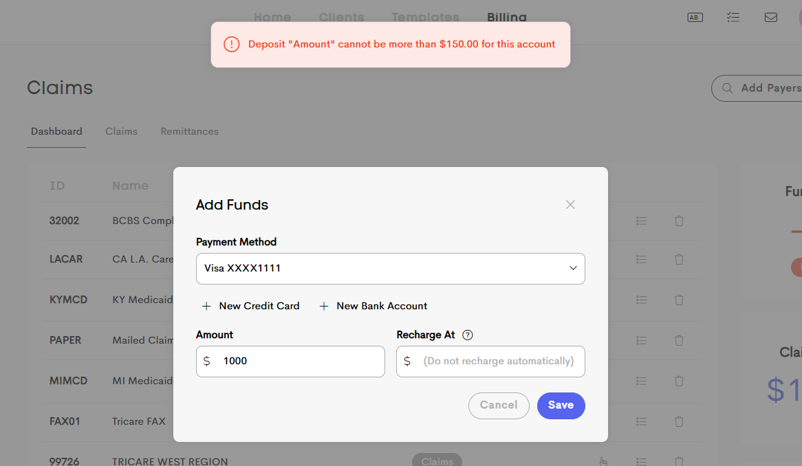 - Funds Balance Deposit Limits: We’ve implemented limits on how much can be deposited into the Funds Balance at one time: