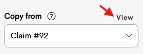 If the selected "copy from" claim belongs to the current client, all fields will be copied. Otherwise, only limited fields will be copied. To view the claim you selected to copy from, click "view" for a popout of that claim!