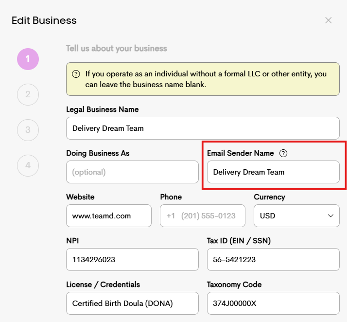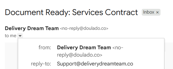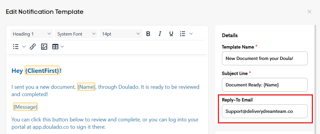 Change Default Reply Email Address and Sender Name: Previously, emails sent on behalf of doulas were delivered from app@doulado.co. These emails will now come from no-reply@doulado.co, helping ensure that any replies are directed back to the doula who originally sent the message, rather than Doulado’s support team. Additionally, the sender name is now customizable, allowing you to display your business name instead of the default “Doulado”, that which emails previously came from!