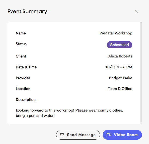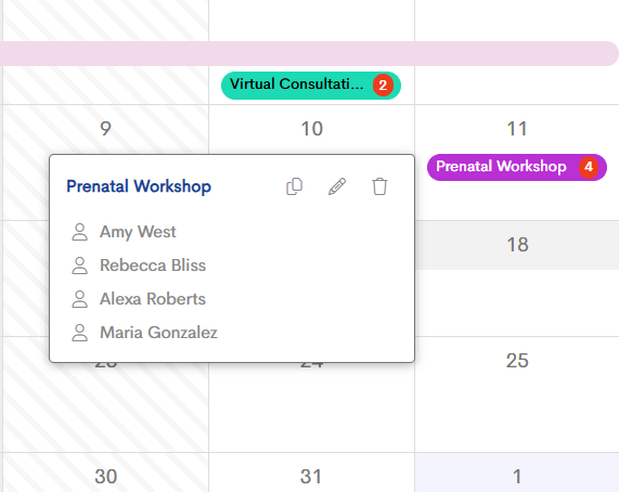 Please note: In this first phase, clients will need to be manually added by doulas to a single event. At this time, multiple clients cannot book the same time slot directly through a booking page.