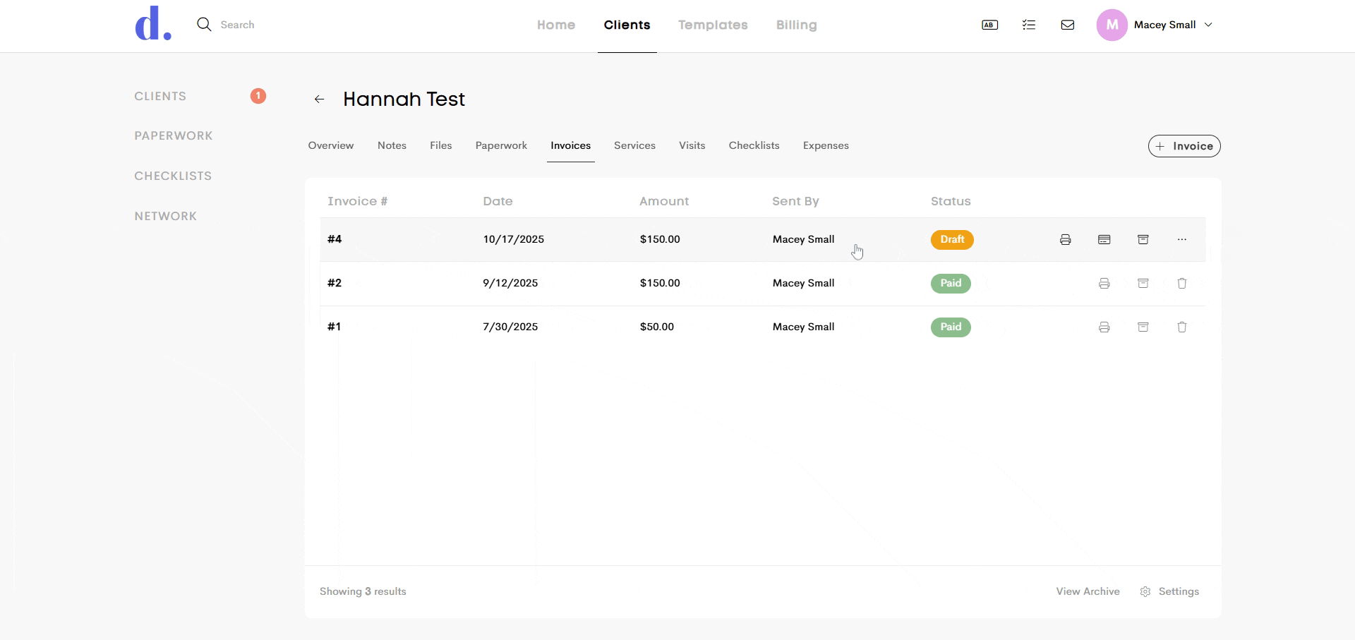 - Sending Invoices to Multiple People: You can now send invoices to multiple recipients, not just the primary client. When sending an invoice, simply select the “Send All” option to deliver the invoice to both the client’s main email and any associated contact emails. If you choose this option, automated reminders will also be sent to all selected recipients.