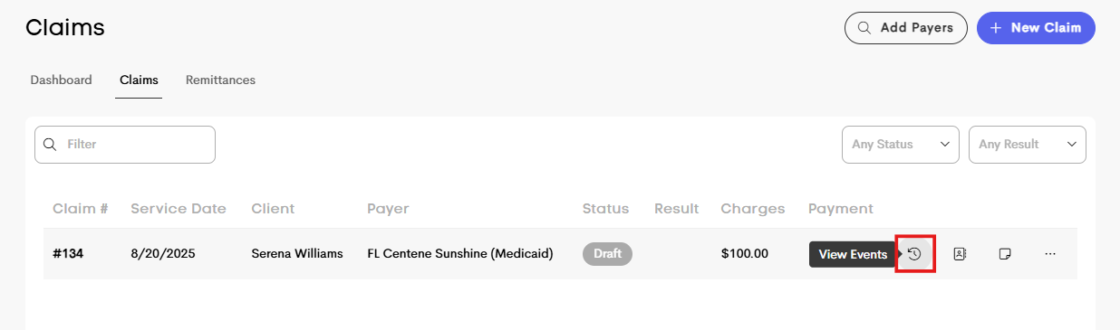 - Show Claim IDs: When claims are denied, troubleshooting with payers can be challenging if providers don’t have access to the clearinghouse claim ID or number. Previously, this required contacting our support team to retrieve the information, causing delays. These internal claim IDs will now automatically appear in your claim’s “Events” log, making it easier to identify and resolve issues directly.