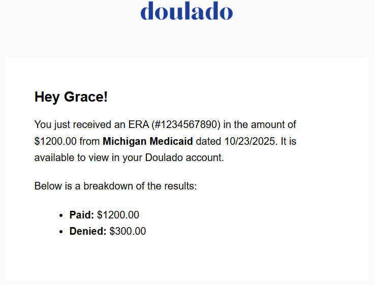 - ERA Notifications: ERA emails have now been updated to include more information! These emails will now include paid and/or denied counts in the notification as well.