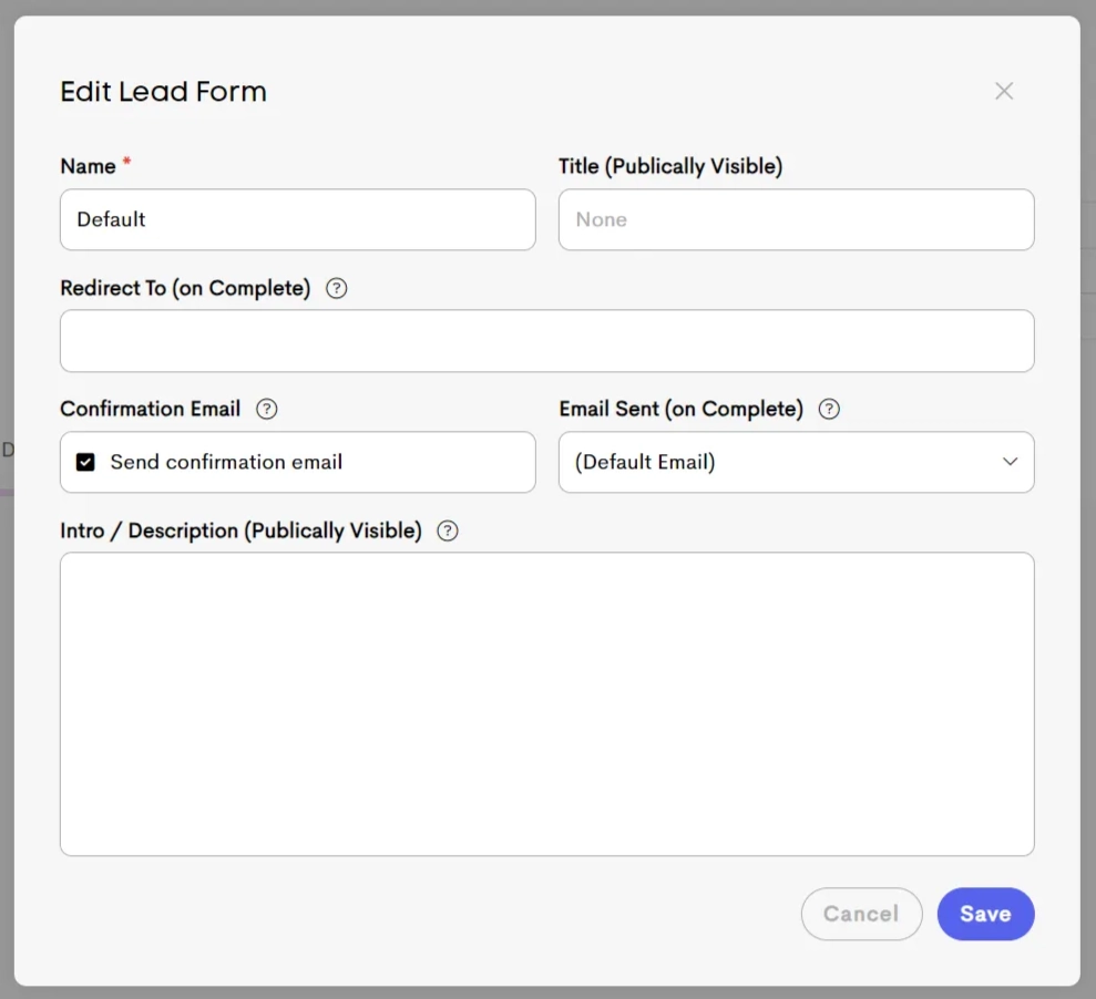 | Intro / Description | This text will be shown at the top of the lead form for anyone filling it out. |
