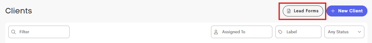 To customize a lead form, go navigate to Clients and click on the Lead Forms button.