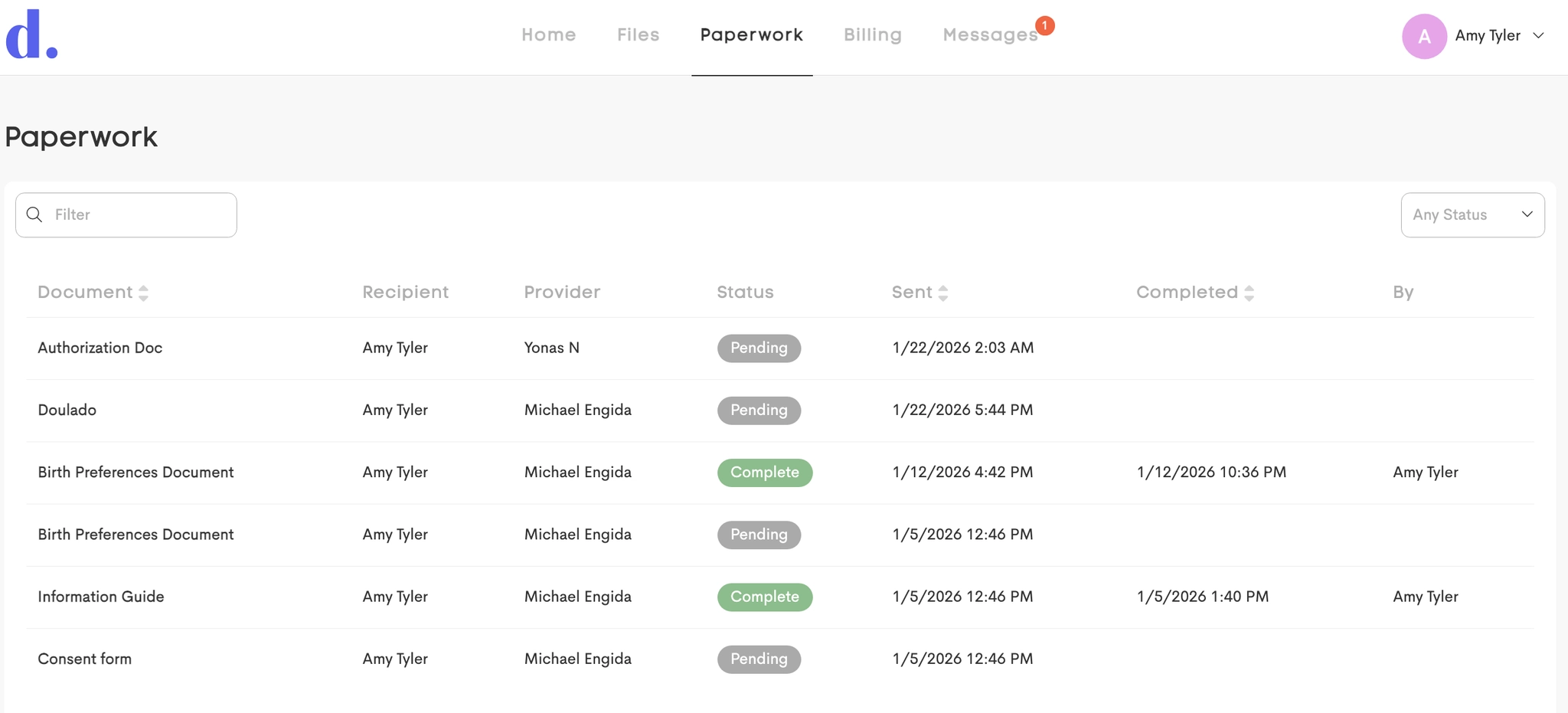 Clients can view and complete all documents and forms sent by providers.