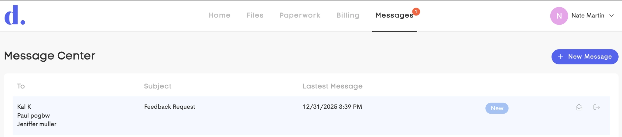 Client’s messaging center for secure communication with providers.
