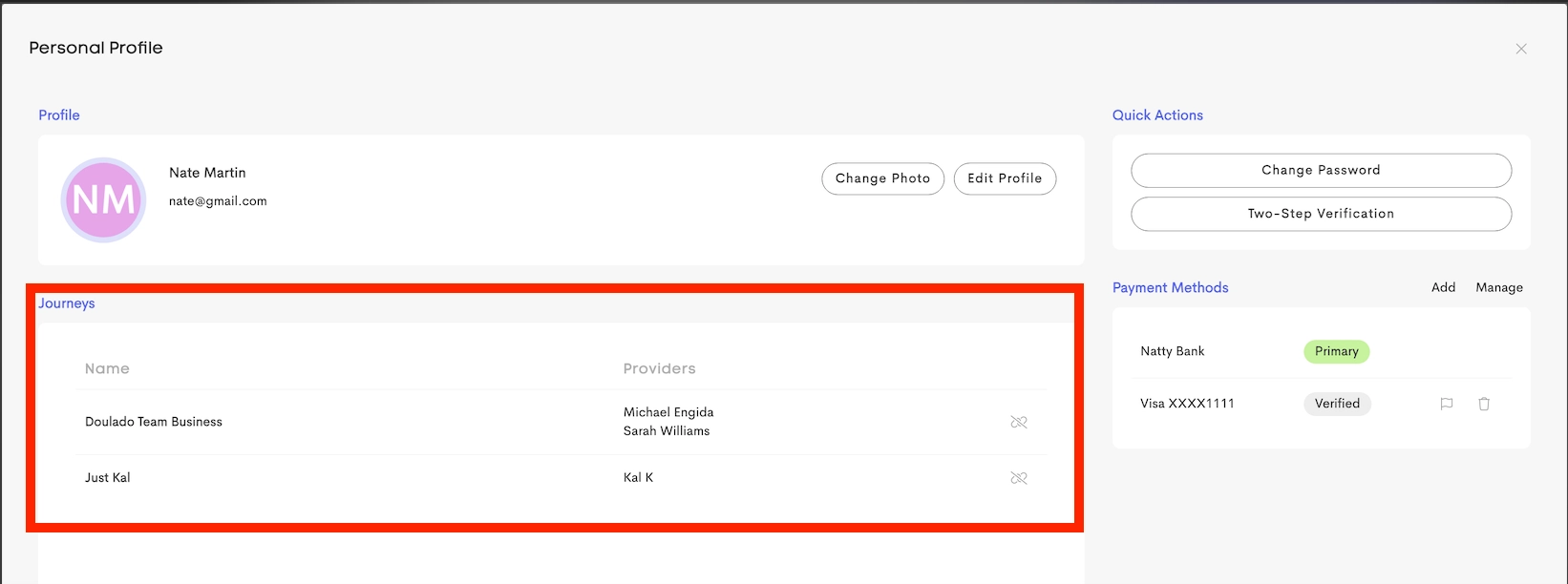 Clients who work with multiple businesses in Doulado can manage their connections settings from their profile.