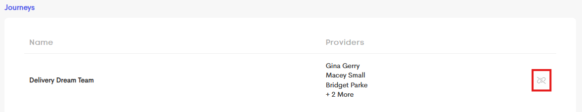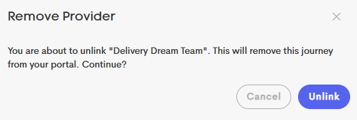 Clicking the Unlink button in the Provider's row will remove the Provider from the Client's Journey.