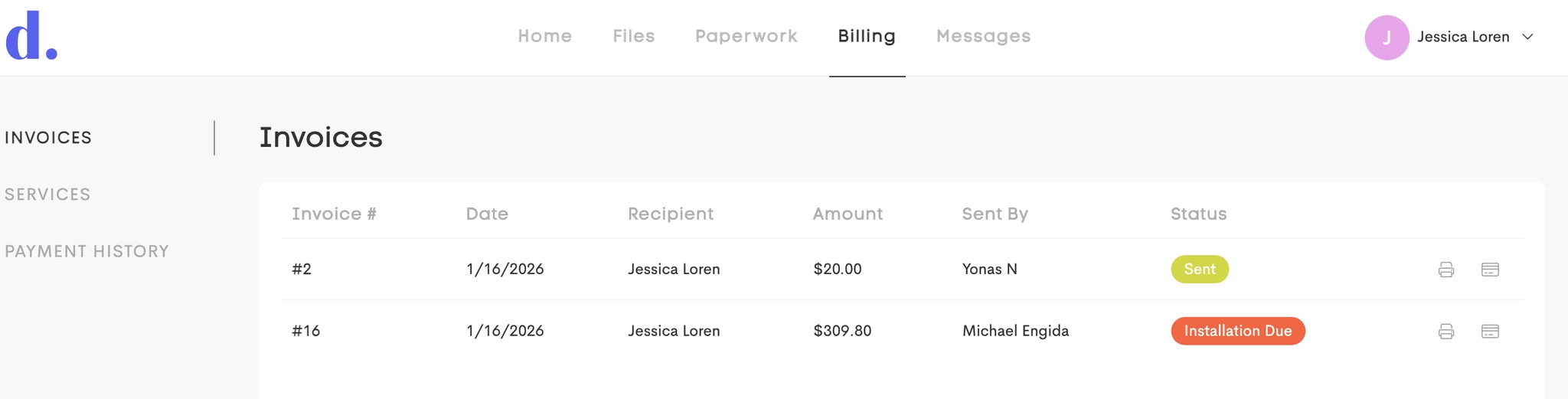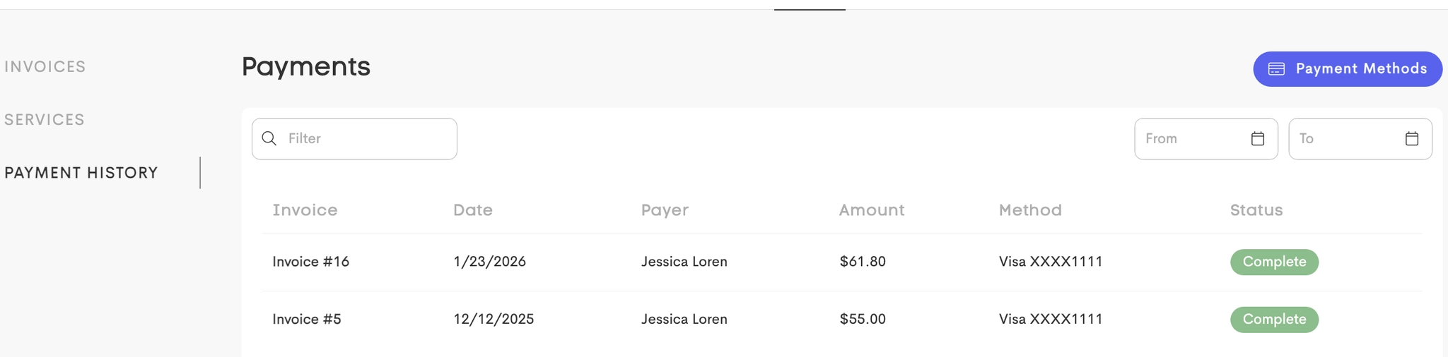 Invoices: View and pay all open invoices sent by providers