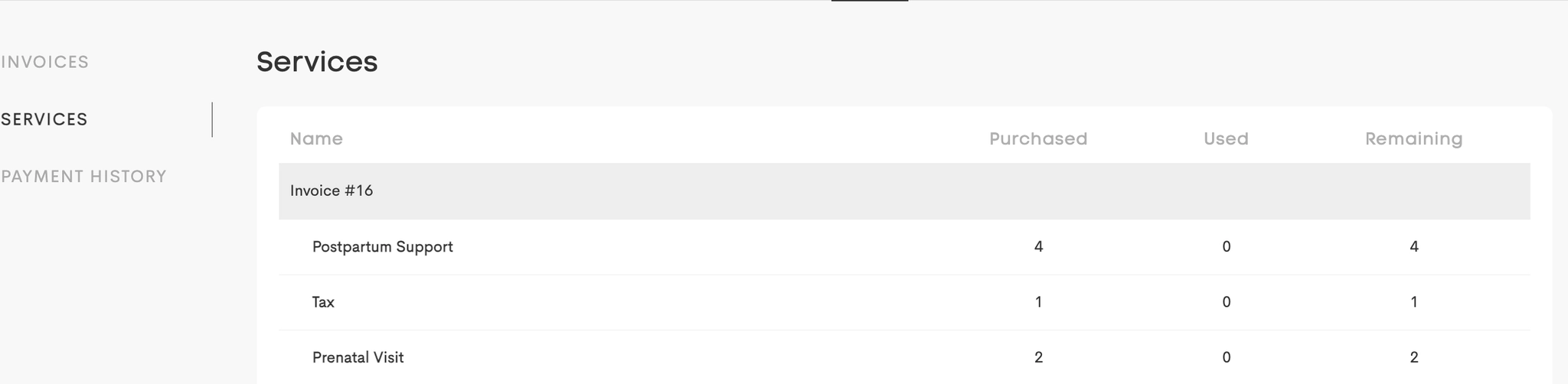 Through the portal, clients can manage appointments, complete forms, make payments, and communicate with providers. Although it looks similar to a doula's profile, it contains fewer details.