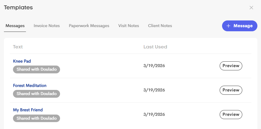 Text Templates help you save time by allowing you to reuse commonly used messages across Doulado. Instead of typing the same content repeatedly, you can create templates for notes, messages, paperwork, and invoices, and insert them whenever needed.