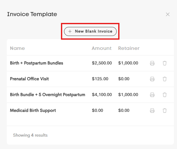 You can click on + New Blank Invoice or choose an existing invoice template.