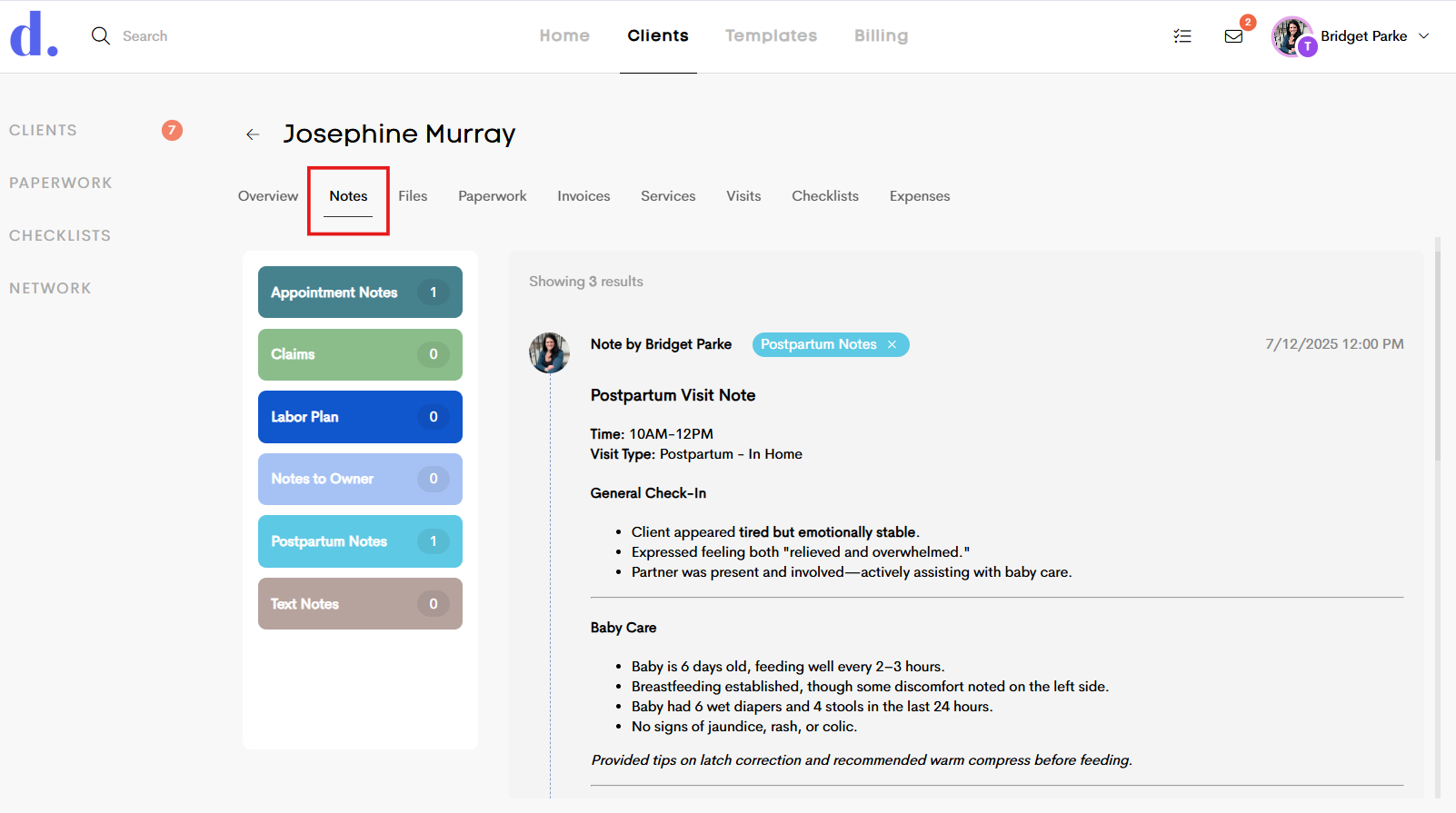 Doulado’s client notes feature helps you keep thorough, organized, and secure records for each client journey. Here's how it works—and all the customization options you have. This article is in reference to the Notes tab on a client profile, but you can learn more about visit notes here!