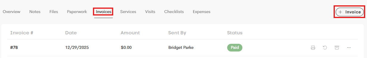 From the Quick Actions area of a Client Journey's Overview tab, using the New Invoice button.